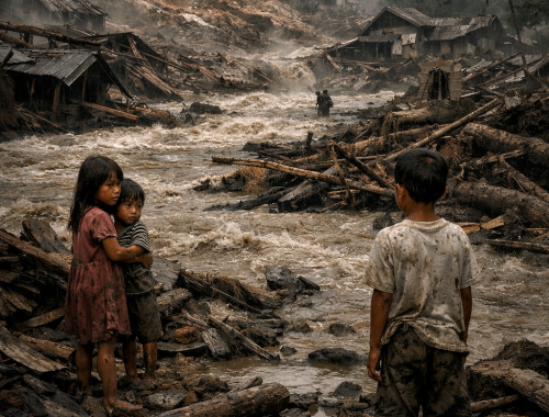 Air turun bukan sebagai tamu,ia datang seperti ingatan yang lama disimpan,mengalir dari bukit yang pernah dibuka perlahan,dari akar yang dilepas tanpa sempat berpamitan,lalu menyentuh rumah-rumahdengan bahasa yang tak lagi bisa ditenangkan. Di Sumatra, tanah bergerak lalu runtuh,seperti tubuh tua…